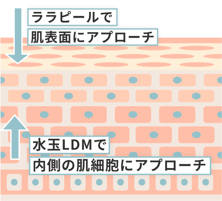 ララピールで角質を整え、LDMで水分とハリを与えることで、ベースメイクがすっと馴染む肌へ導きます。