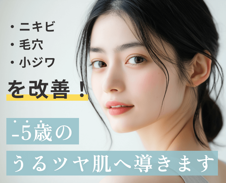 ララピールで詰まりをクリアにし、LDMで肌の水分バランスとハリを整えることで、キュッと引き締まった印象に。